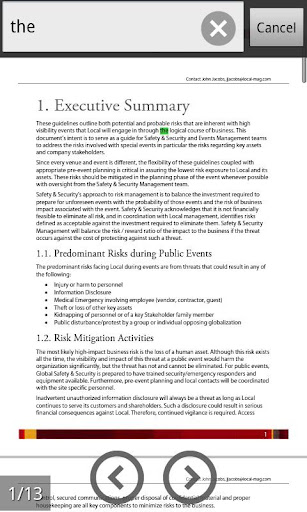 Mempunyai kebolehan yg sama seperti di PC, Adobe Reader membenarkan navigasi dibuat mengikut helaian muka penuh atau secara berterusan. Tetapi dengan kelebihan yg ada pada skrin sentuh Android, teknologi pinch to zoom menjadikan pembacaan PDF semakin mudah dikendalikan & supaya membaca lebih bersemangat.